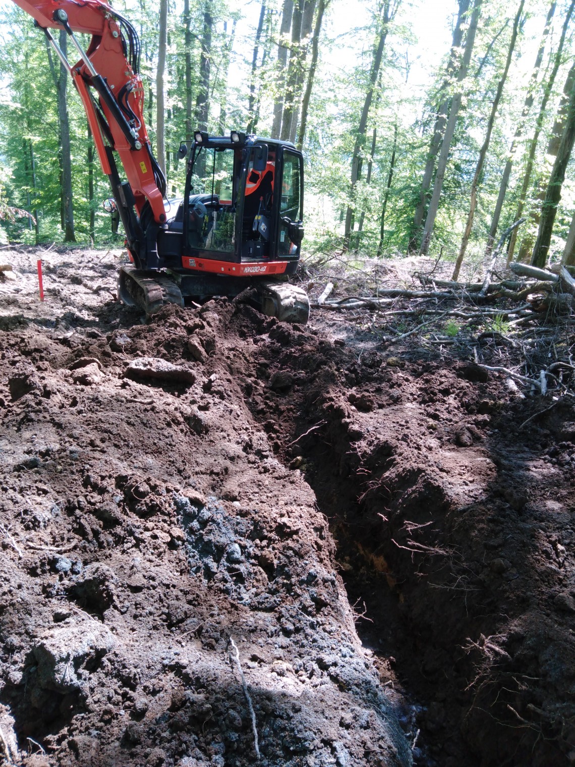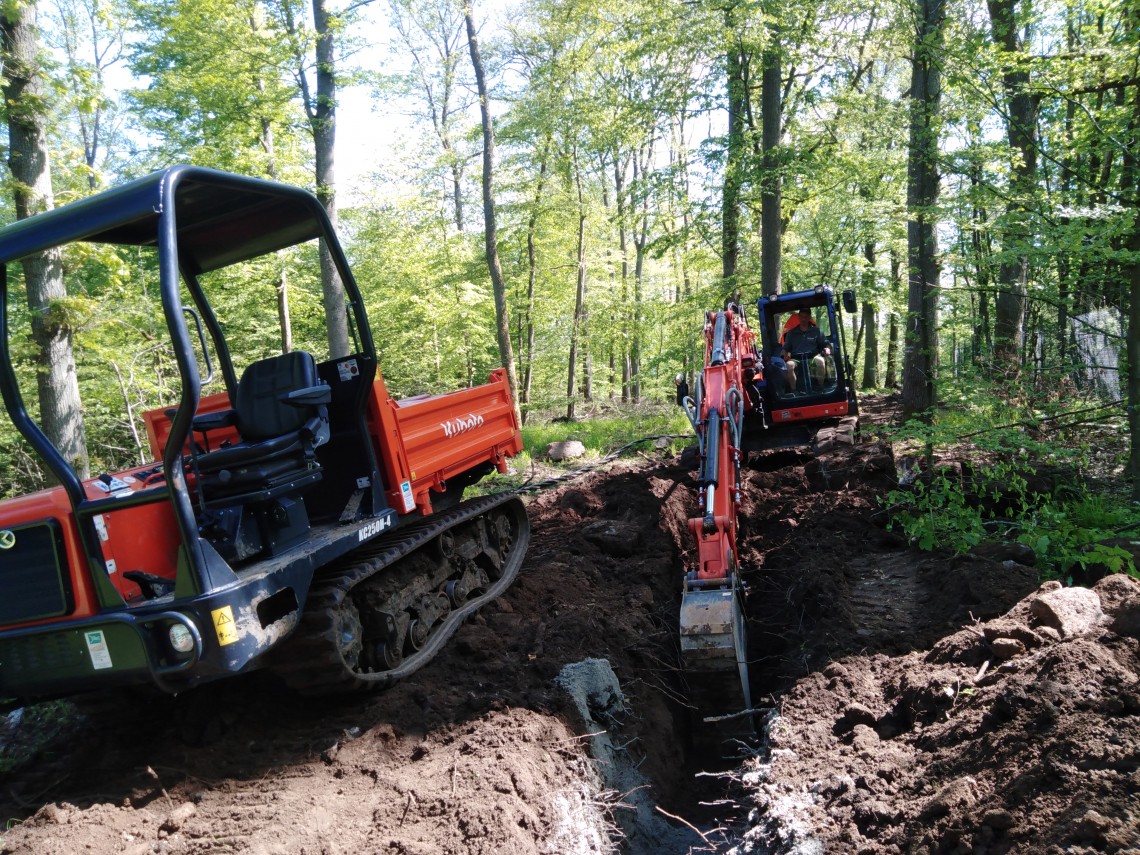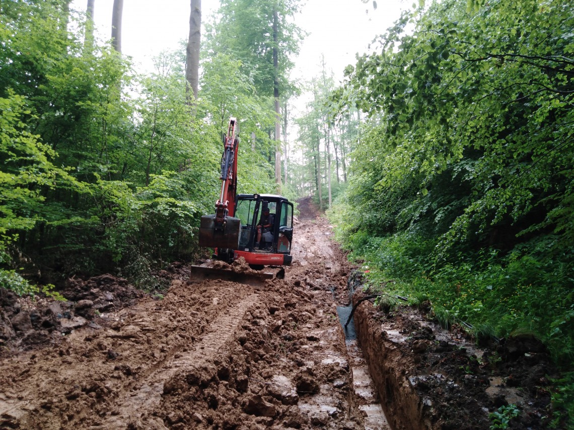 Nach Abstimmung mit unserem beauftragten Bauunternehmen Adolf Bördner Hoch- & Tiefbau GmbH & Co. KG, Weilburg-Waldhausen und dem Eigentümer Hessenforst, wurden die Vorarbeiten bereits am 25.5.2021 begonnen.