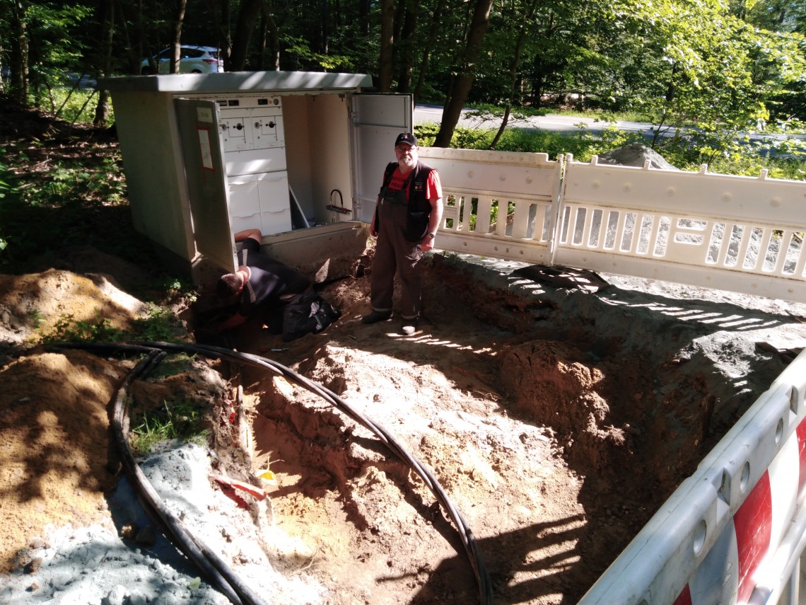 In Abstimmung mit allen Beteiligten konnten die Umschalttätigkeiten und restlichen Erdarbeiten am 14.6.21 vollständig abgeschlossen werden. Durch eine vorbildliche und erstklassige Ausführung der Tiefbauarbeiten durch unseren Jahresunternehmer Fa. A. Bördner wurde die Maßnahme trotz anfänglicher Schwierigkeiten aufgrund der schlechten Witterung fristgerecht durchgeführt.